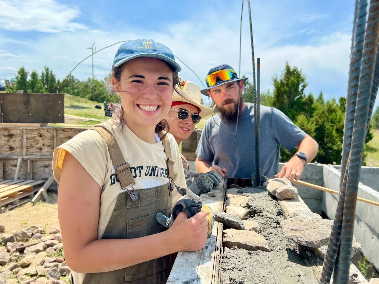 Campers form construction teams and work daily from 9:00 until 1:00. Professionals are on hand to instruct and assist in gathering stones, mixing and pouring concrete, installing slip forms, and laying the stones and concrete into the forms. Campers also help with pruning trees, mending fences, and doing other ranch work.